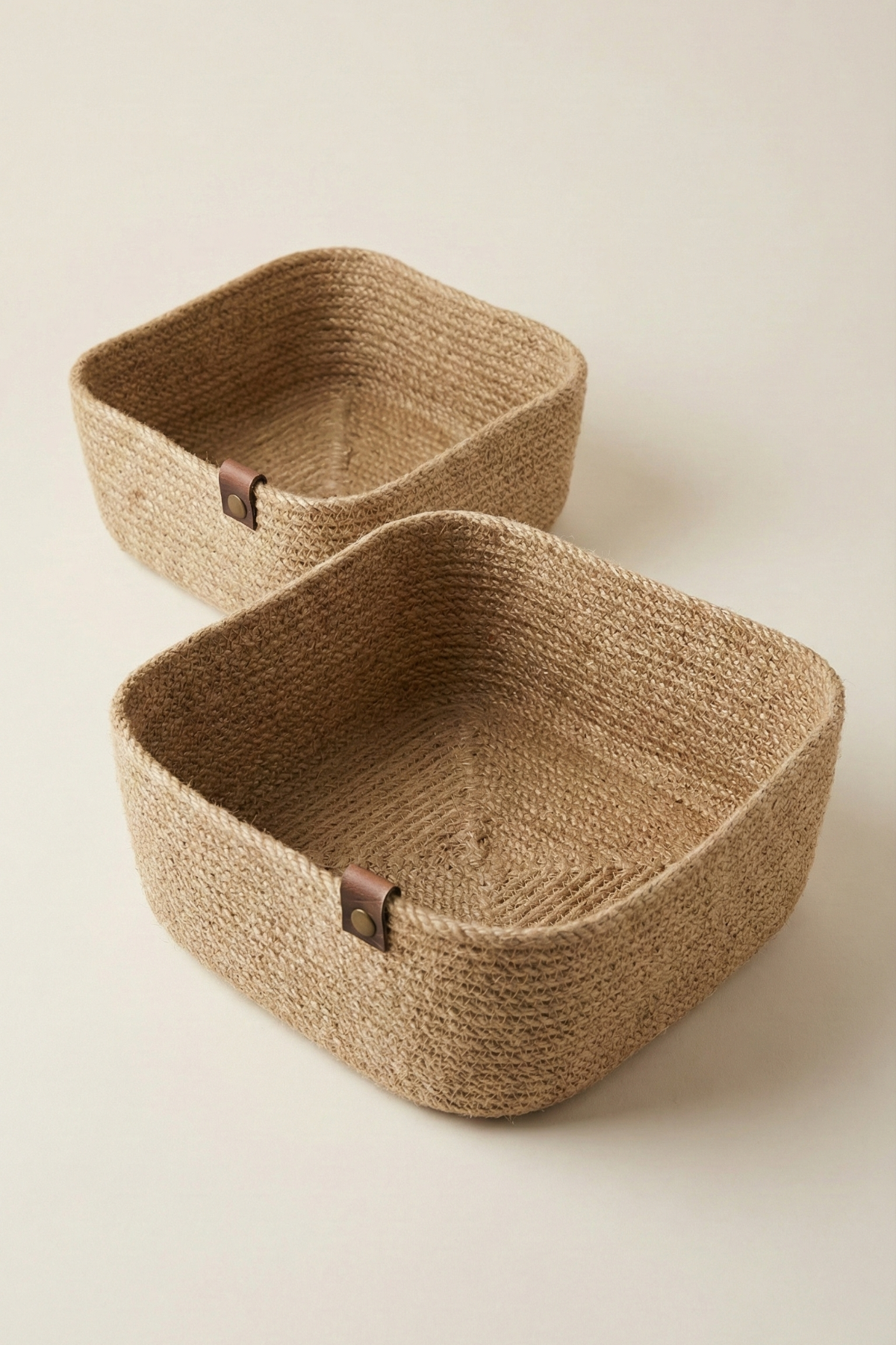 Doğallık ve düzen bir arada! Bu 2’li kare jüt sepet seti ile evinize şıklık ve kullanım kolaylığı kazandırın.