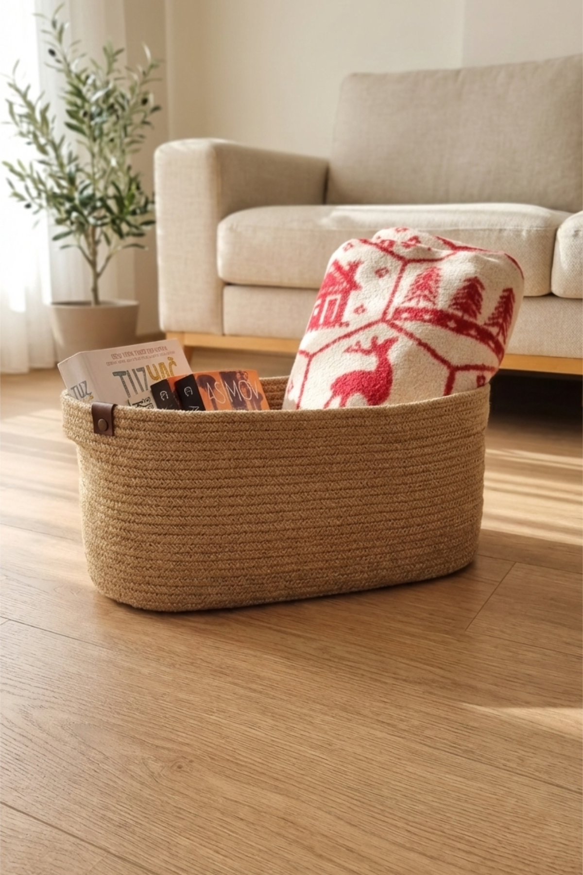 Jüt Hasır Oval Dekoratif Sepet - Doğal ve Şık Düzenleme Çözümü